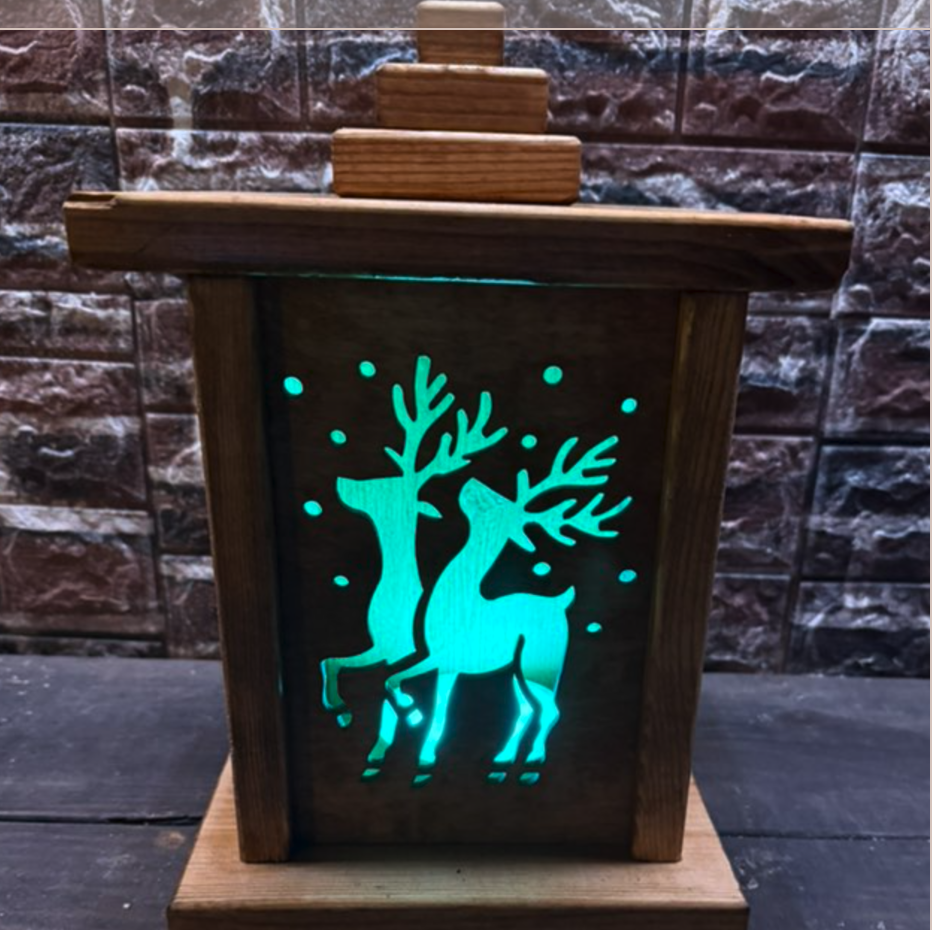 Beautiful 8x12 inch wooden lantern with color-changing LED light. Comes with 5 interchangeable seasonal inserts.