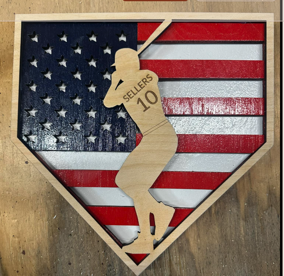 Custom baseball home plate shaped like an American flag. Perfect for baseball fans!